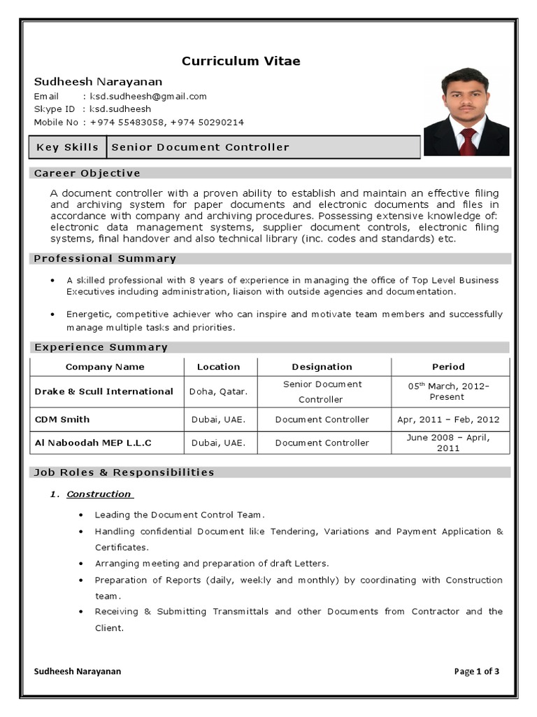 Cv For Document Controller In Construction : Document Controller Cv Format Microsoft Excel Computing / One of the best ways to acquire the skills for a role is to take an online course.